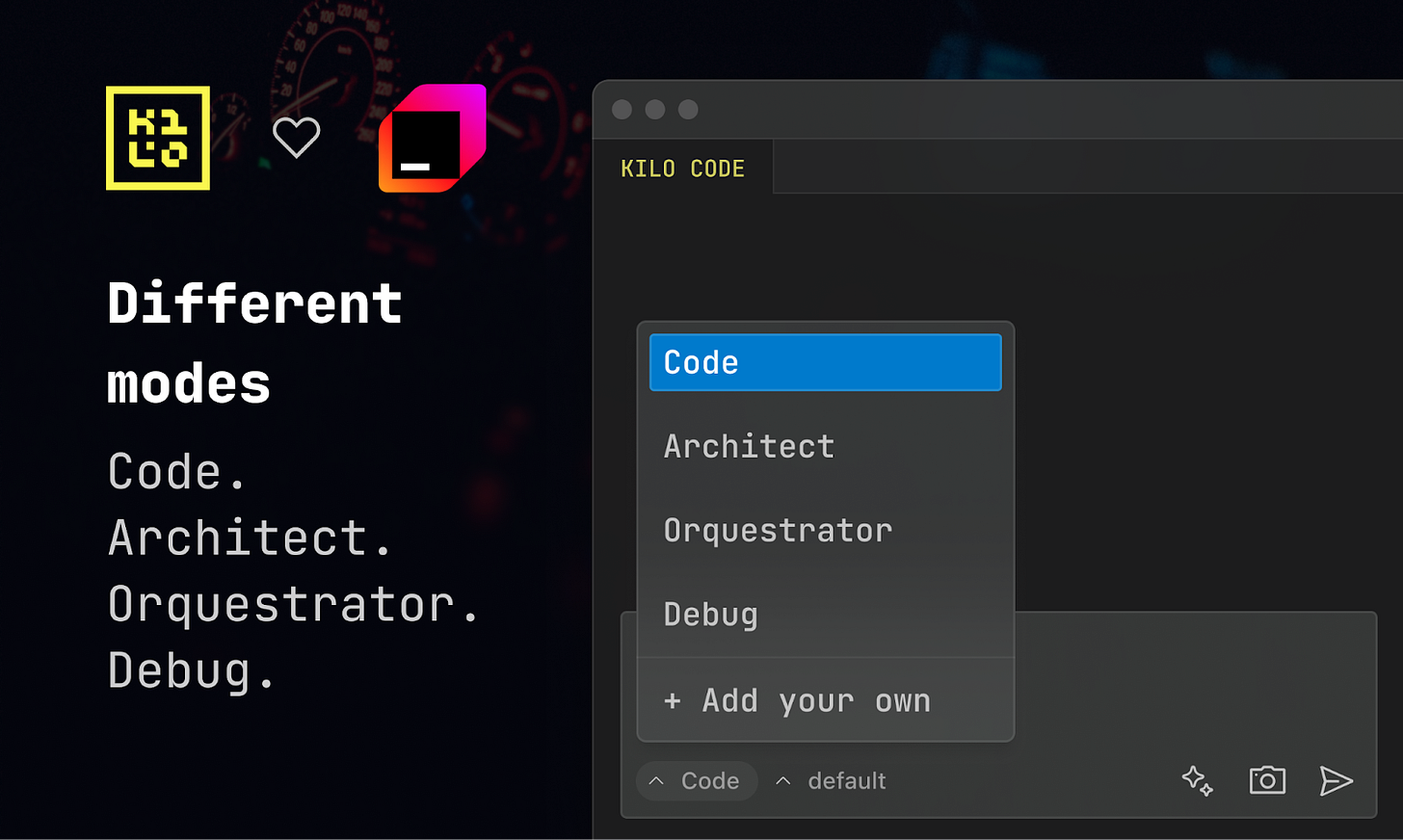 Kilo Code provides an entire team of specialized AI teammates through different modes: