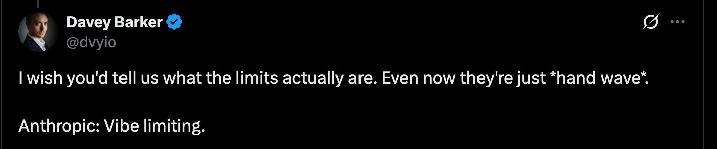 Every bait-and-switch makes developers hedge bets instead of fully committing. Or maybe, at “best” they delay AI adoption, waiting for "stable" pricing. Or perhaps worst of all…self-limit usage to avoid hitting caps.