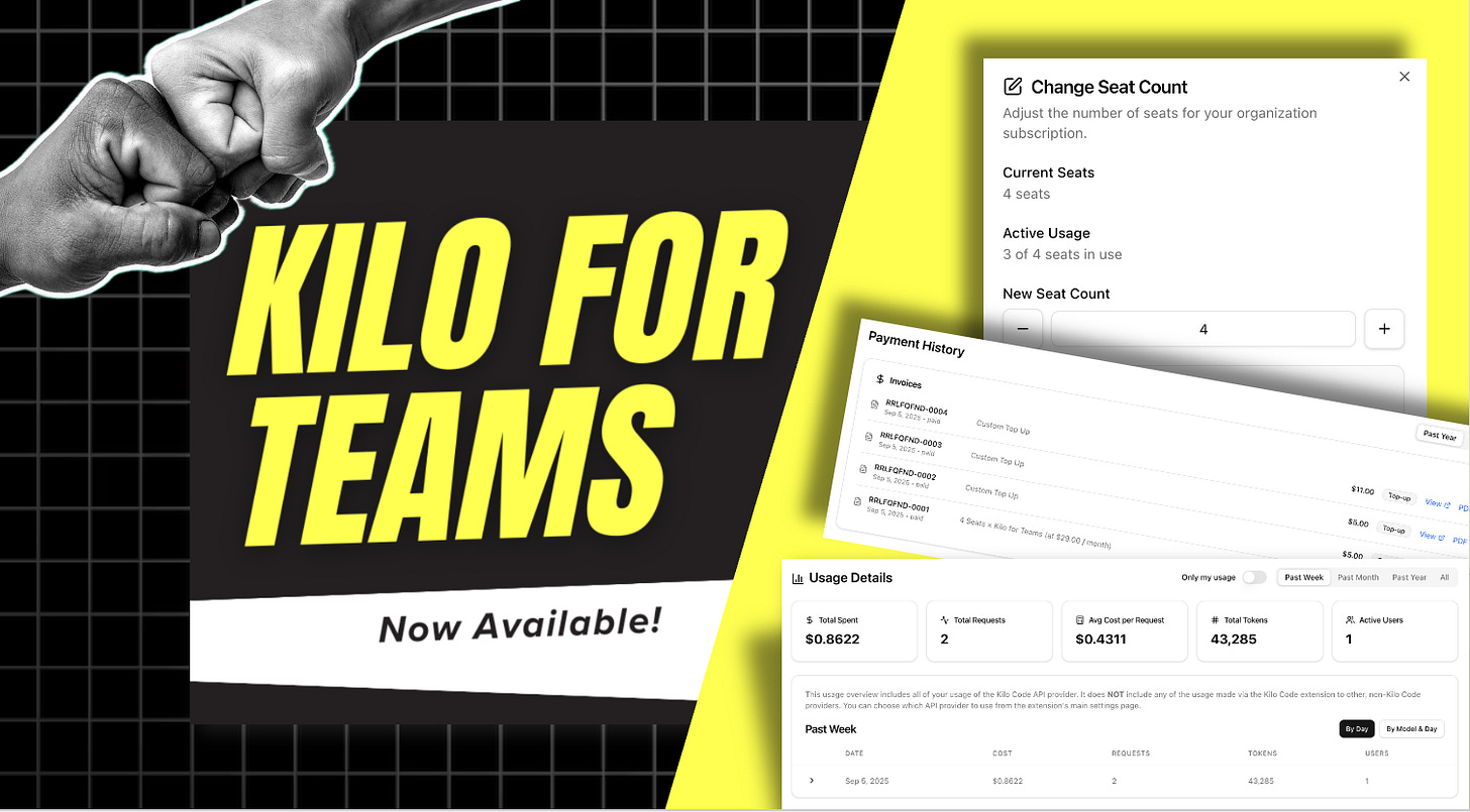 The solution: We shipped the fix. Kilo for Teams launches today, September 10th, 2025. Read how to get started here.