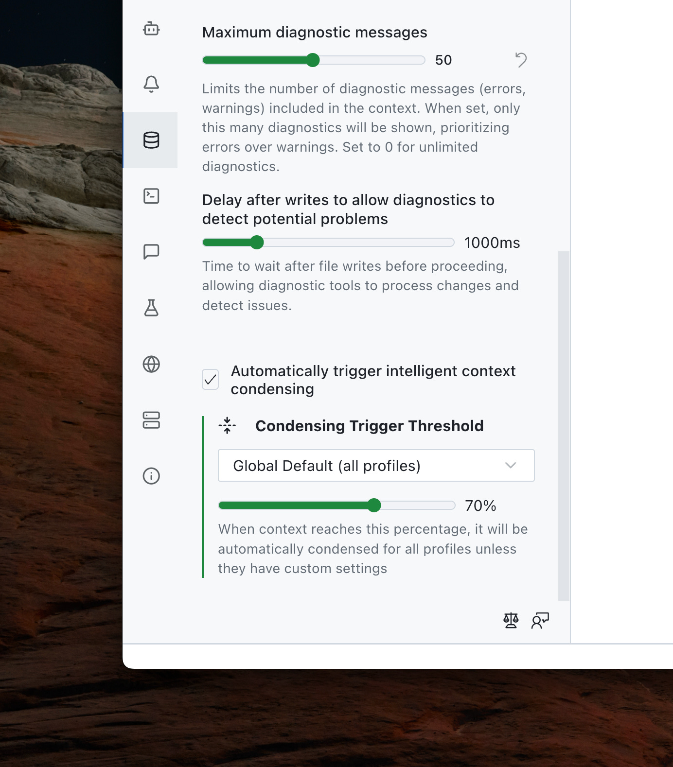 In real-world usage, Kilo Code’s automatic context condensing (enabled by default) helps mitigate these issues by intelligently reducing context size while preserving relevant information. You can also manually toggle condensing whenever needed to maintain optimal performance.