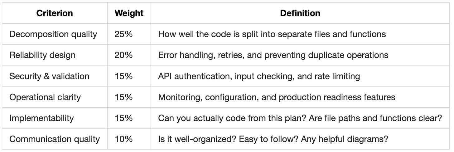 We used the criteria above to score the output across 2 models for Cursor’s Plan Mode: