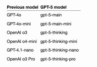 It’s also interesting to note Simon Willison’s notes on the mapping of old-to-new OpenAI models from the model card in his in-depth review of GPT-5: