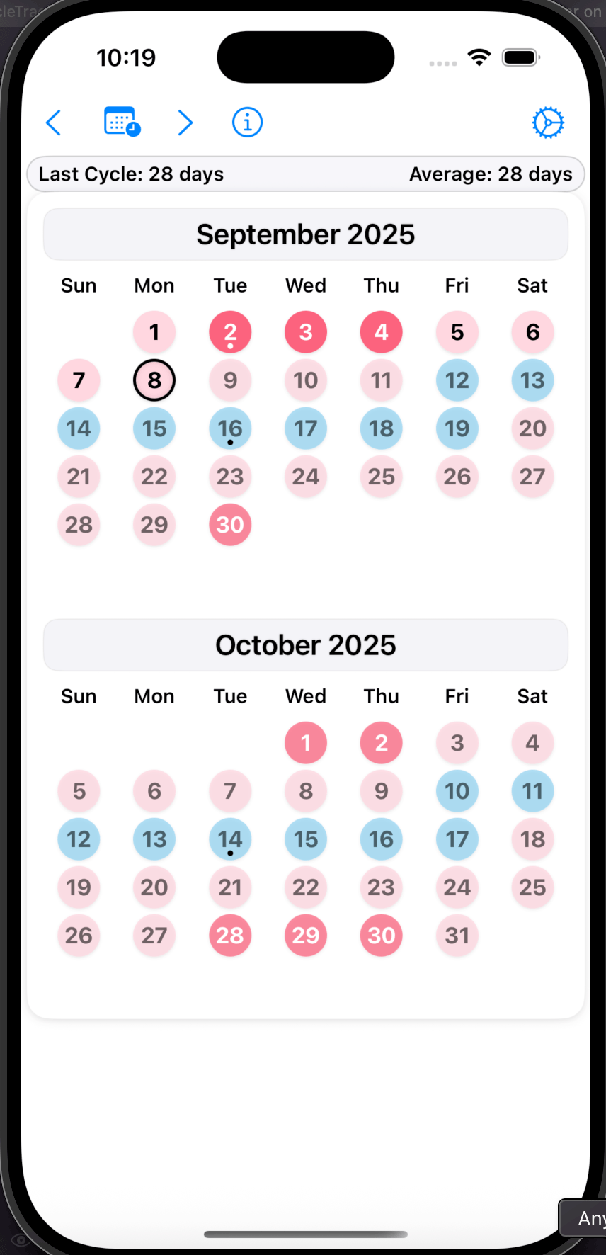 I wanted a simple privacy friendly rhythm tracker for iOS that was like Periodical from Android. Since none existed that worked the way I wanted or didn't collect disturbing amounts of user data I used Grok code to help speed up building my own.