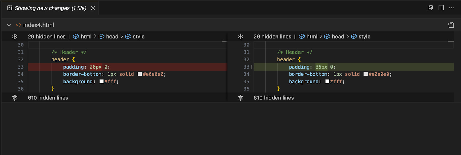 After you click on this button, you’ll see a diff showing all the changes that were made during the execution of the task: