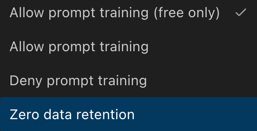 I’m sure you, like most folks, are interested in protecting your privacy. Well, you’re in luck, because you can now enable Zero Data Retention under your Provider Routing settings, ensuring no conversation data is stored by Kilo Code and OpenRouter, covering a wide range of models!