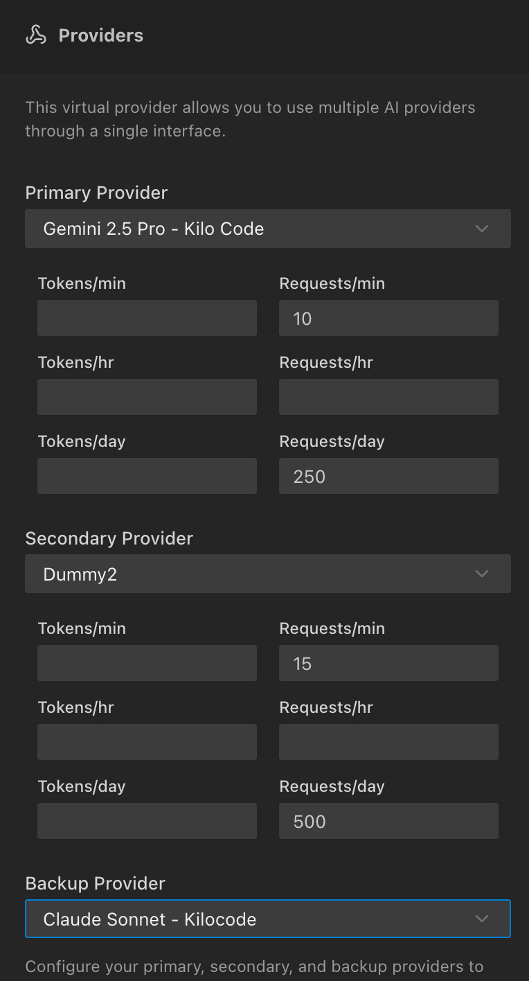 Ever blown through your OpenAI credits faster than a developer burns through snacks during a hackathon? The new Virtual Quota Fallback Provider has your back. Set cost or request limits for your profiles, and Kilo Code will automatically switch to backup providers when you hit your limits.