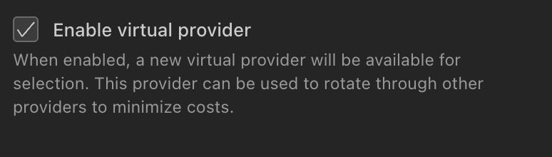Create a new provider profile and set its "API Provider" to "Virtual".