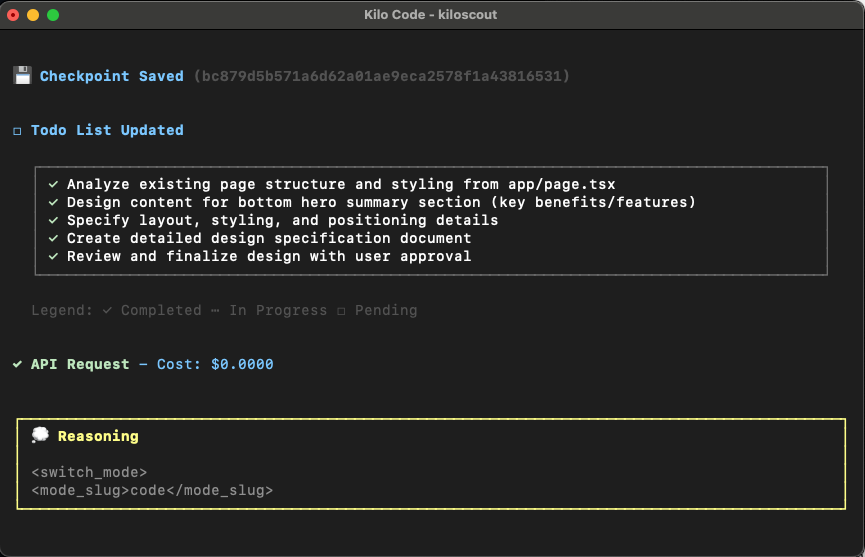 You can now roll back any conversation to a previous step using the Checkpoint feature in the CLI. You can undo refactors, try alternate approaches, or return to a known-good session.