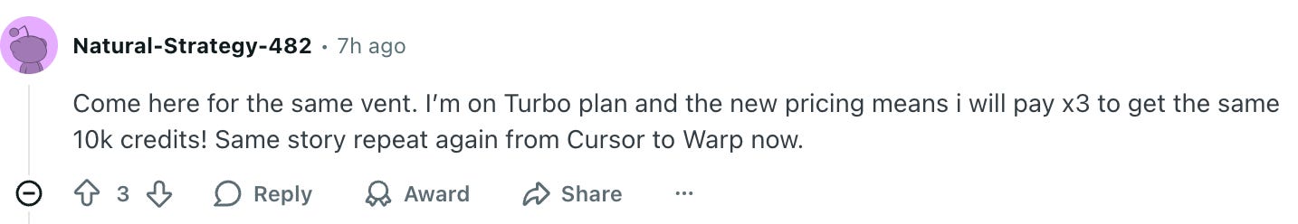 The AI devtools pricing saga continues…and Warp is the latest to solve unsustainable math with a new pricing page.