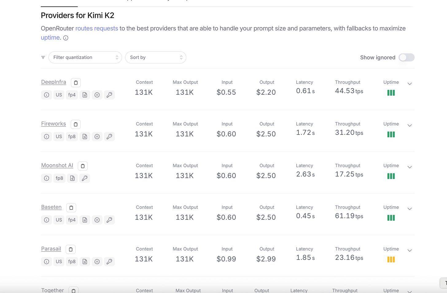 Just to give you an idea, OpenRouter’s Kimi K2 page lists at least six different inference providers for the same model (that list is growing by the day):